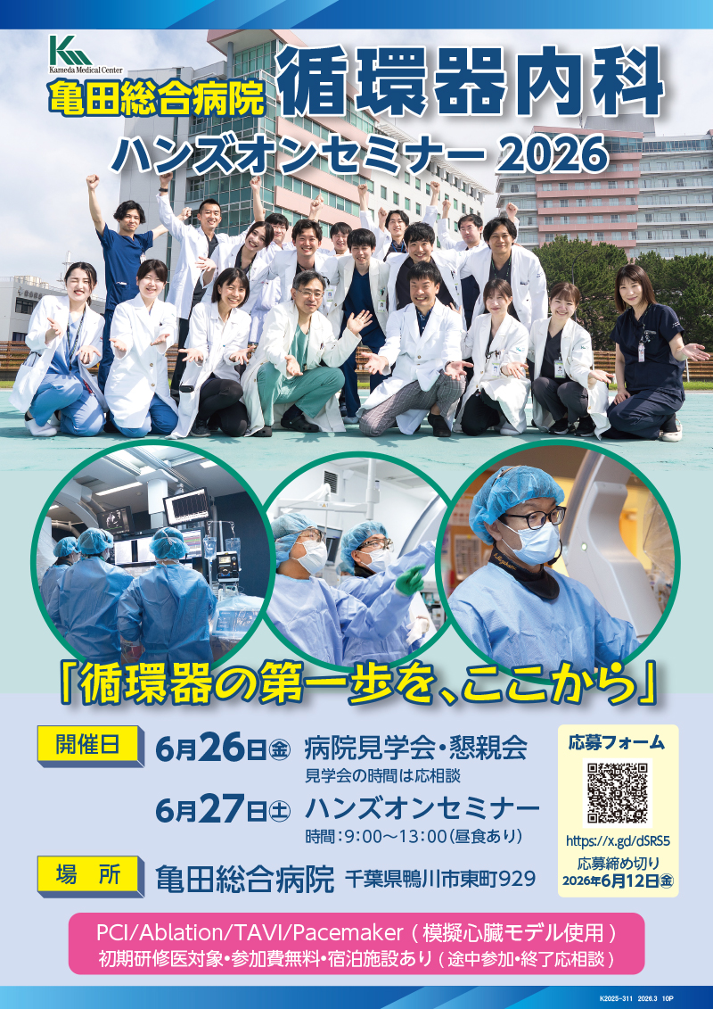 前回大好評につき、今年度も ”亀田総合病院循環器内科 ハンズオンセミナー2026”開催いたします!!