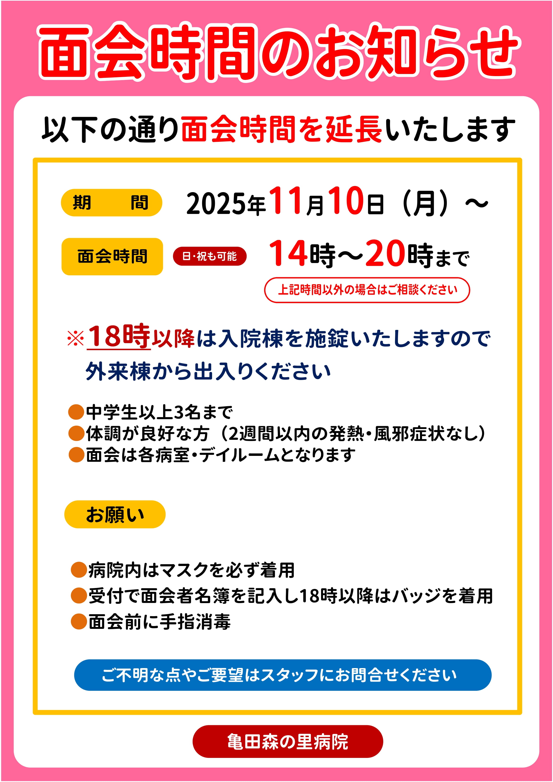 入院・面会の方